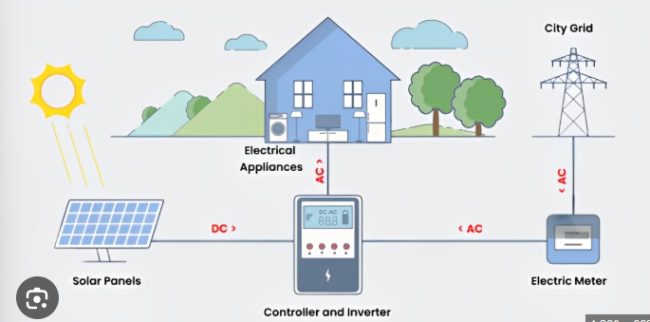 - ประเภทเชื่อมต่อระบบสายส่งการไฟฟ้า (Grid connected inverter) มีหลักการทำงานคล้ายแผงโซลาเซลล์ กล่าวคือ แปลงพลังงานจากแสงอาทิตย์เป็นไฟฟ้ากระแสสลับ และนำกระแสไฟฟ้าดังกล่าวเข้าสู่ระบบสายส่งการไฟฟ้า เพื่อช่วยประหยัดค่าใช้จ่ายในการใช้งานไฟฟ้าภายในบ้าน